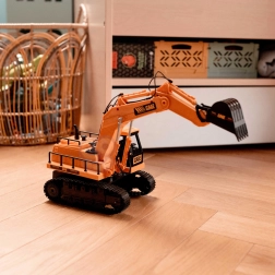 Grande escavatore a comando remoto del marchio WOOPIE è il giocattolo ideale per i piccoli appassionati di macchine edili. Si distingue per l'alta qualità del materiale, cingoli larghi in gomma e un grande valore educativo.
