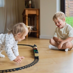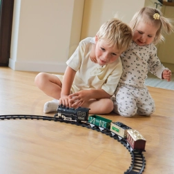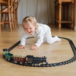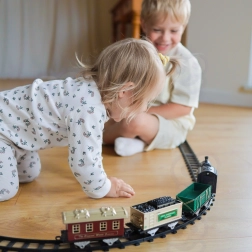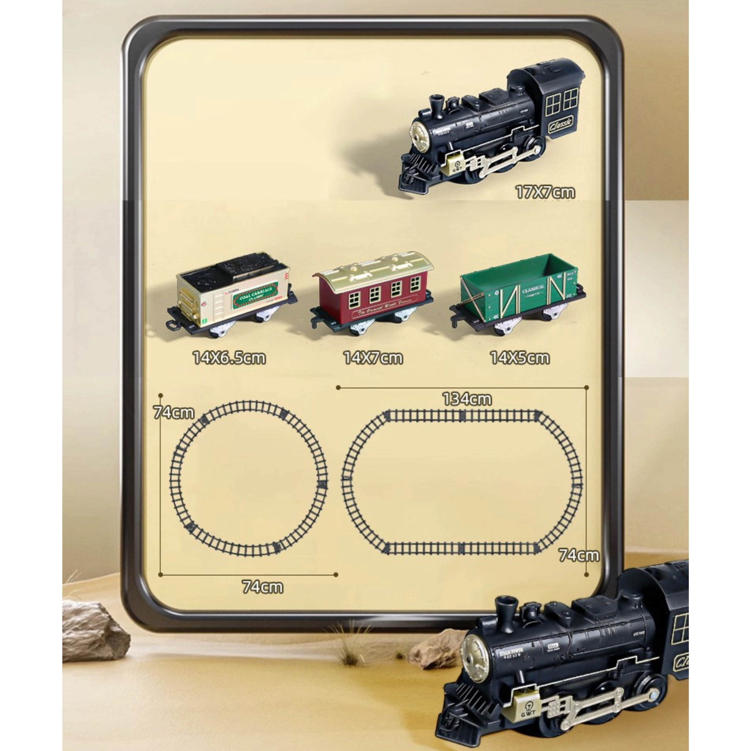 Questo tradizionale set a vapore offre ai bambini un’esperienza autentica di viaggio in treno. La locomotiva ha un faro luminoso e suoni realistici che esaltano l’atmosfera di gioco. I binari si agganciano facilmente, così in pochi istanti potrai costruire un circuito di 74 cm di diametro o un ovale 134 × 74 cm.