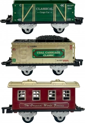 Il set include una carrozza passeggeri, un carro per il carbone e un carro merci per storie di trasporto sempre diverse.