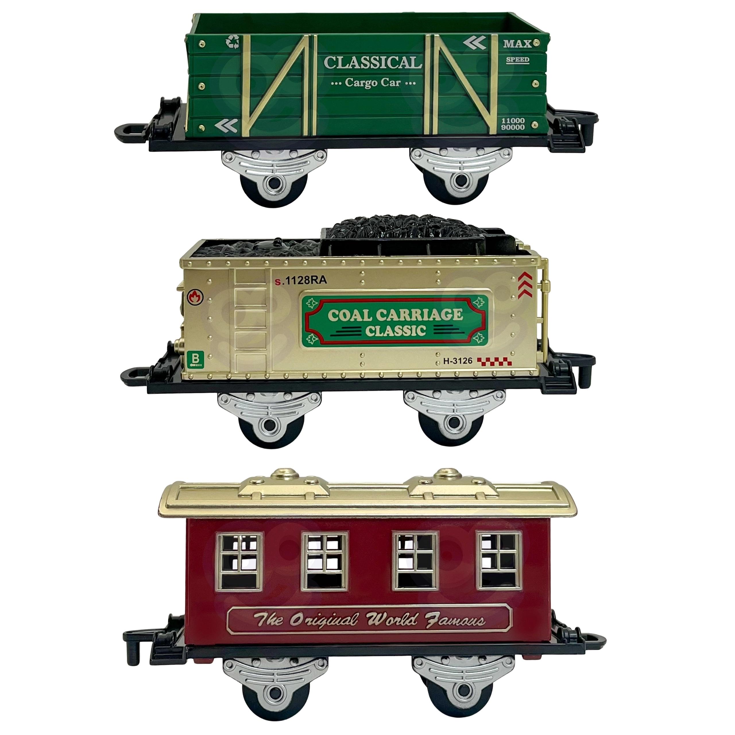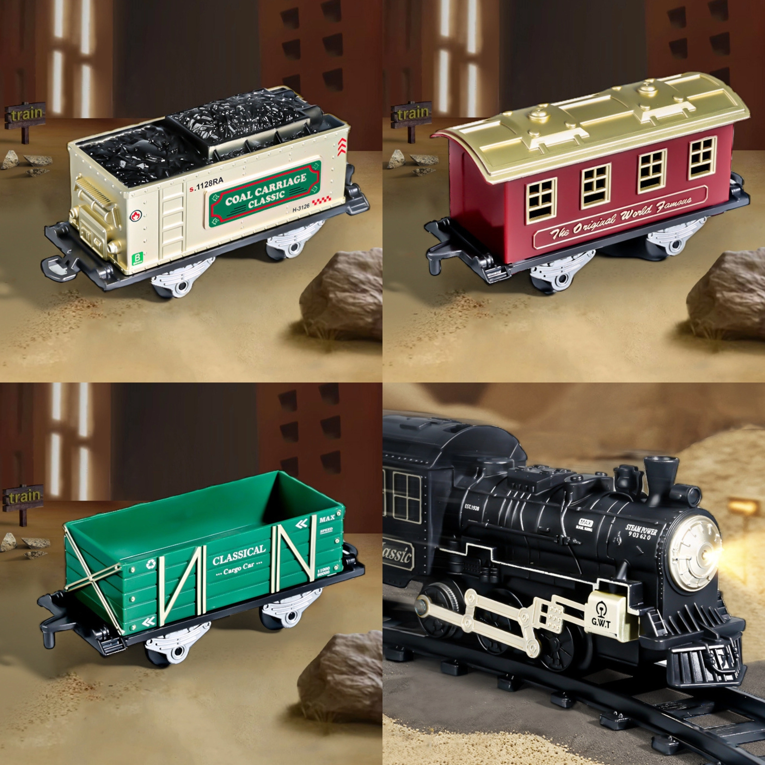 • Look autentico: classica locomotiva a vapore con vagoni dettagliati.