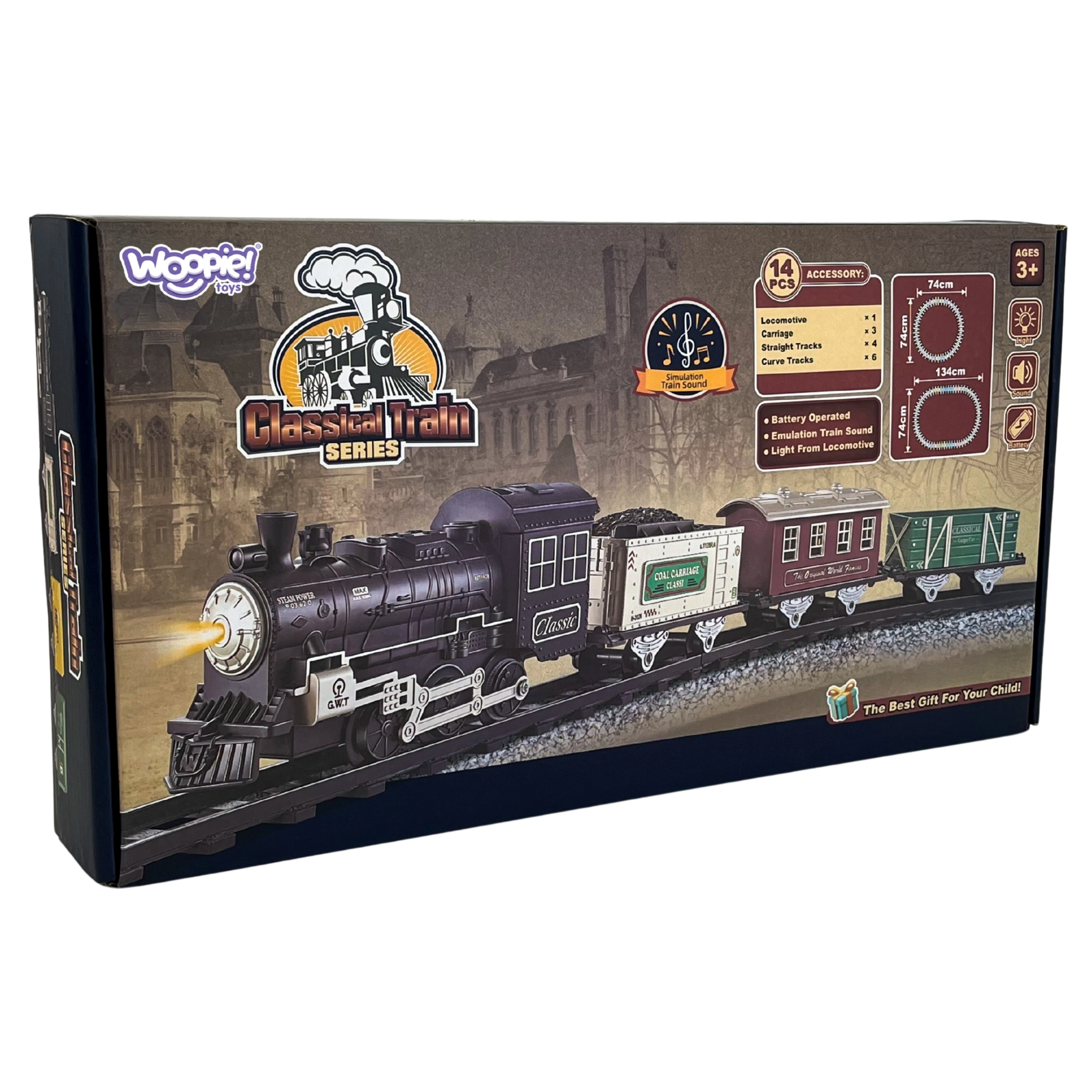 Scopri il fascino delle ferrovie classiche con il set di treno a vapore WOOPIE. Una locomotiva realistica con luce e suoni, binari facili da collegare e un variegato set di vagoni offrono ore di gioco creativo ai piccoli macchinisti dai 3 anni in su.