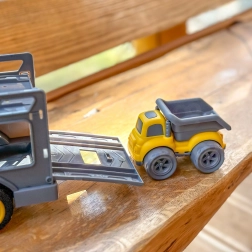 Il grande trasportatore con rampe consente di caricare e trasportare facilmente tutti e tre i veicoli. La struttura stabile resiste anche al gioco intenso dei bambini.