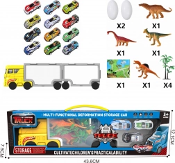 - La grande cassa funziona come un deposito mobile per veicoli più piccoli e figure di dinosauri
