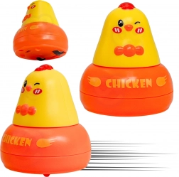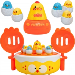 La base con melodie e rotazione fa “saltare” i pulcini in modo casuale, così i bambini allenano riflessi e coordinazione mentre li acchiappano.