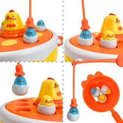• Divertimento 4in1: pesca con canna, catapulta con acchiappo, disco musicale rotante, pulcino–macchinina