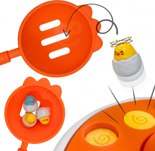 Lancia un pulcino e prendilo con la paletta! L’elemento d’azione porta un divertimento dinamico e sviluppa riflessi e abilità motorie.