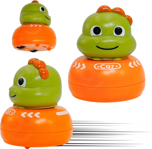 Il grande dinosauro funge da piccola macchinina per ulteriori scenari di gioco. Sul retro della base ti aspetta anche il gioco del tris per una sfida strategica più tranquilla.