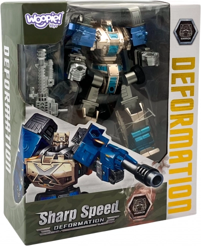 Il robot da combattimento Sharp Speed di Woopie è progettato per bambini da 3 anni in su e offre una trasformazione rapida e intuitiva da veicolo da costruzione a robot e viceversa.