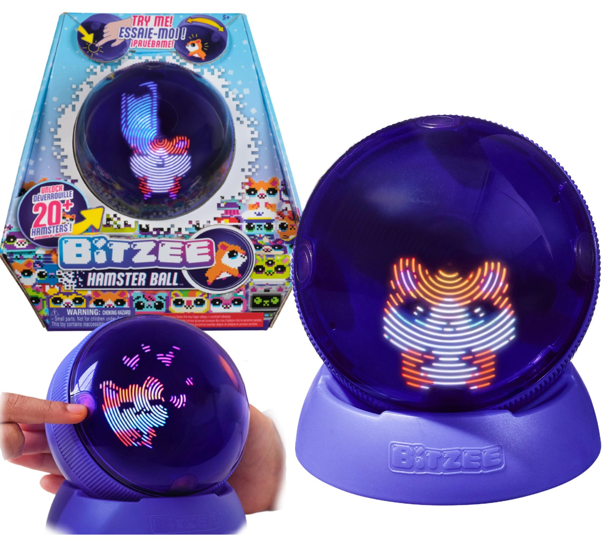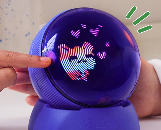 Scopri un nuovo concetto di animale domestico digitale: BITZEE Hamster Ball combina interazione tattile con coinvolgenti effetti luminosi e reazioni adorabili. Puoi nutrire, accarezzare, fare il bagnetto al criceto e divertirti con la ruota – osservandolo crescere da cucciolo ad adulto e trasformarsi in Super Bitzee. Il giocattolo funziona senza display, sostenendo così creatività e motricità fine.