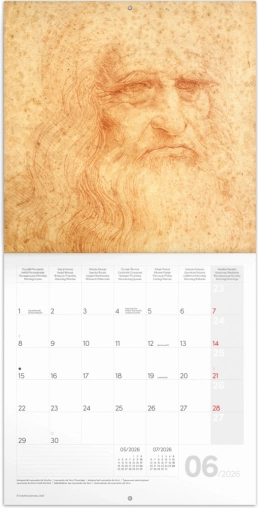 Scoprite il pratico calendario delle note con dodici opere di Leonardo da Vinci. Calendario chiaro, fasi lunari e spazio per appunti rendono questo calendario uno strumento ideale per il vostro anno.