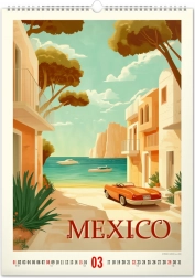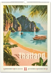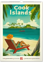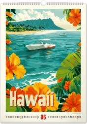 Imposta una parte del paradiso tropicale nel tuo spazio con un calendario murale ispirato ai poster vintage. Comprende: