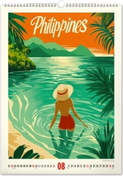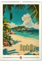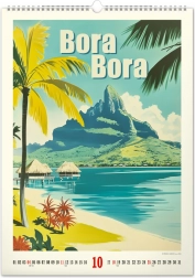 Innamorati della bellezza dei paradisi tropicali con il fascino di tempi passati. Questo calendario murale presenta un calendario semplice su sfondo bianco.