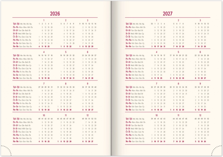 - Calendario: a partire da dicembre 2025, layout settimanale in ceco, slovacco e altre lingue come inglese, tedesco, ungherese e russo.