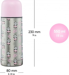 Presentiamo una pratica thermos con design unico, capacità di 550 ml e coperchio a vite che può essere utilizzato come bicchiere per bevande. Mantiene la bevanda calda fino a 12 ore e la bevanda fredda rinfrescante fino a 24 ore.