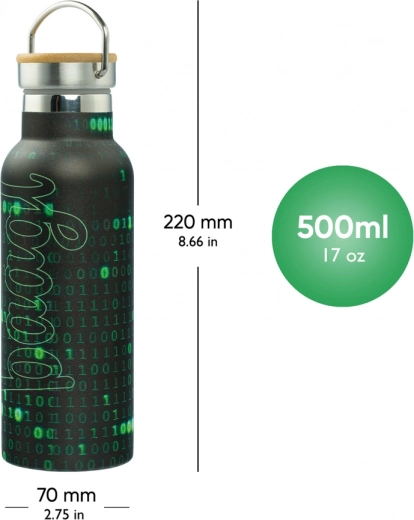 Questa elegante bottiglia termica da 500 ml con tappo in metallo non solo ha un aspetto fantastico, ma è anche molto pratica. Grazie alla costruzione a doppia parete in acciaio inossidabile, è ideale per il mantenimento della temperatura delle tue bevande.