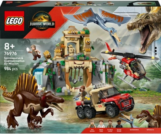 Parti per un'avventura ricca d'azione con il set LEGO Jurassic World con Quetzalcoatlus e Spinosauro. Ti aspettano un antico tempio con trappole, un'elicottero, un camion fuoristrada e 4 minifigure. Dinosauri snodabili, meccanismi nascosti e tanti accessori offrono infinite possibilità di gioco e costruzioni creative con 984 pezzi.