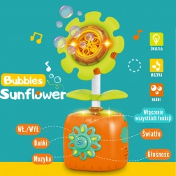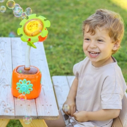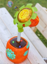 Premi il pulsante e il girasole soffia tantissime bolle, creando all’istante un’atmosfera magica sia in casa che all’aperto.