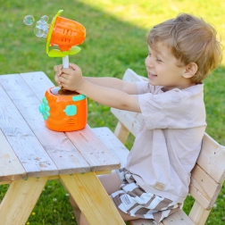 La macchina delle bolle a girasole WOOPIE supporta lo sviluppo della motricità fine, della coordinazione occhio–mano e della creatività. Perfetta per il giardino, un picnic o la cameretta – leggera, portatile e pronta all’uso immediato.