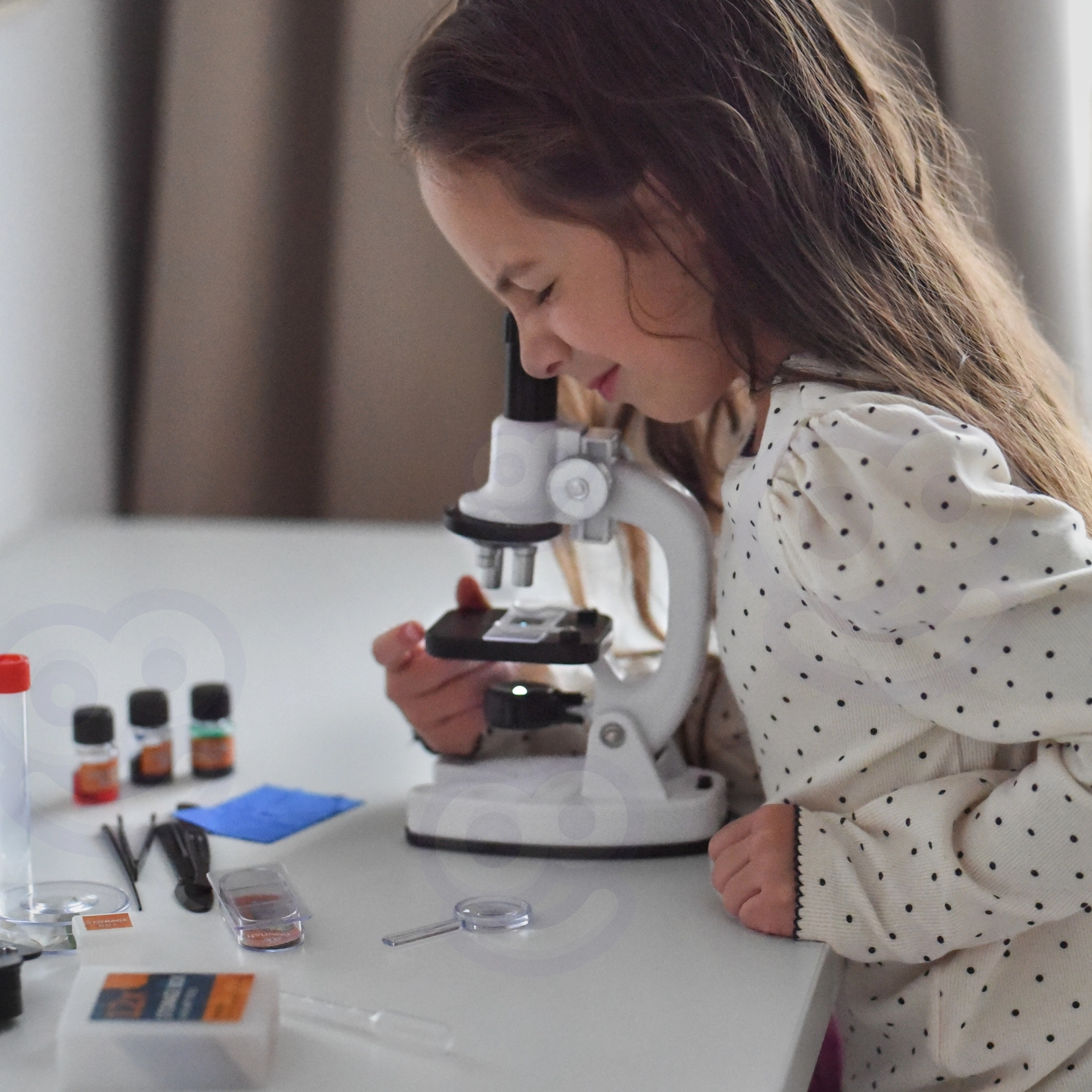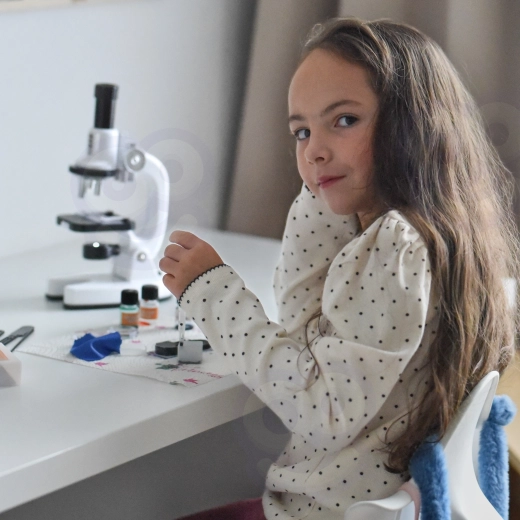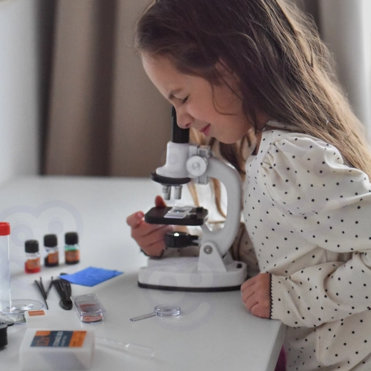 È incluso un adattatore per smartphone, così è possibile fotografare e condividere le osservazioni in modo comodo. Il ricco set di accessori (vetrini, boccette, pinzetta, pipetta e altro) favorisce esperimenti sicuri e divertenti e sviluppa abilità scientifiche, pazienza e coordinazione occhio-mano.