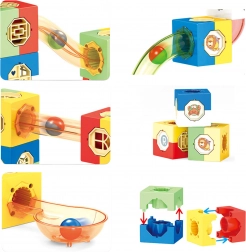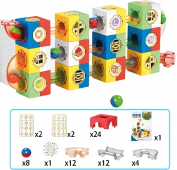 Questo set creativo permette ai bambini di progettare e riconfigurare originali labirinti per biglie secondo la propria fantasia. Grazie alla combinazione di mattoncini, segmenti lineari, elementi inclinati e tubi trasparenti, seguire il percorso delle biglie è coinvolgente ed educativo – sviluppa logica, motricità fine e pensiero spaziale.