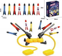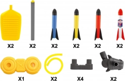 Lancia doppia di razzi in schiuma del marchio Woopie garantisce un divertimento eccezionale all'aria aperta! Consente a due persone di sfidarsi o di giocare insieme contemporaneamente. Basta calpestare la pompetta affinché il razzo decolli in aria!