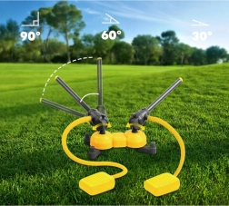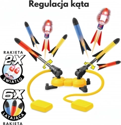 Lancia doppia di razzi in schiuma è ideale per un'attività dinamica in giardino, al parco o nel campo giochi per bambini. I razzetti sono leggeri, realizzati in schiuma morbida e sicuri per i bambini, offrendo molto entusiasmo ad ogni decollo. Le lancia regolabili permettono di impostare qualsiasi angolo (da 30° a 90°) e direzione del tiro.