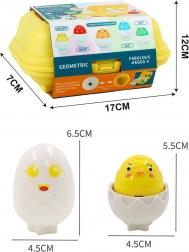 Ogni uovo è composto da due parti: il guscio superiore e il guscio inferiore collegati alla figura del pulcino. I bambini devono non solo adattare correttamente il guscio dell'uovo, ma soprattutto adattarlo al posto giusto nella forma. Ogni uovo ha una forma geometrica unica sulla parte inferiore che corrisponde a un'apertura nella scatola. Le facce divertenti sono un ottimo modo per insegnare ai bambini a riconoscere e nominare le emozioni.