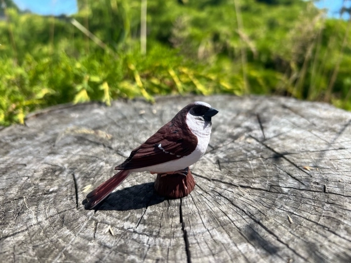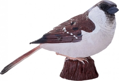 La modellazione accurata e la pittura manuale mettono in risalto le caratteristiche realistiche del passero – dalla struttura del piumaggio alla colorazione autentica.