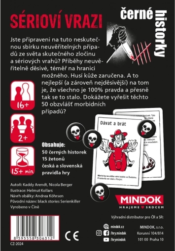 Immergiti nel mondo del true crime con l’edizione Storie nere: Serial killer – un mazzo di 50 casi agghiaccianti ispirati alla realtà. I giocatori insieme svelano misteri inquietanti ponendo domande mirate e ricostruendo passo dopo passo ciò che è davvero accaduto. Ideale per feste, lunghe serate e per gli amanti di gialli e true crime.