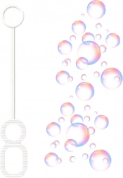 Inclusa nella confezione una bacchetta classica con due occhielli di diverse dimensioni, che permette di creare bolle di varie dimensioni. Questo prodotto è ideale per il divertimento all'aperto, feste di compleanno, animazioni, eventi e per la gioia quotidiana dei bambini.