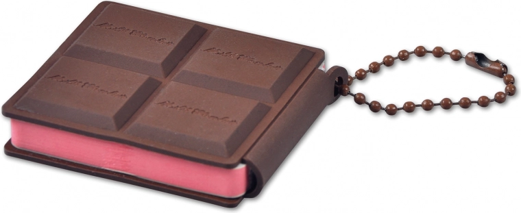 Piccolo blocco con grande potenziale! Gifty cioccolatoso notes è ideale per chi ha bisogno di annotare rapidamente idee. Grazie alla sua forma compatta e alla catenella pratica, avrai il blocco note sempre a portata di mano.