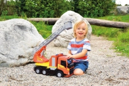 Il modello è realizzato in plastica resistente e dispone di robusti assi ruota in metallo (6 mm) per una lunga durata anche in giardino o su terreni più impegnativi. Il giocattolo è facile da manovrare, ha una cabina dettagliata e scorre senza intoppi grazie ai numerosi assi.
