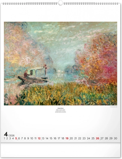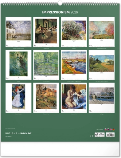 Questo calendario di grande formato è la scelta ideale per gli amanti dell'arte che desiderano ammirare ogni mese un differente gioiello della pittura impressionista.