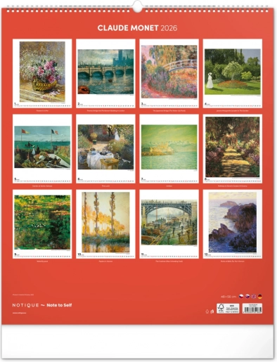 Se ammiri le opere di Claude Monet, questo calendario da parete è perfetto per te. Ogni mese offre un nuovo dipinto dalla sua ricca galleria piena di paesaggi freschi e vivaci figure.