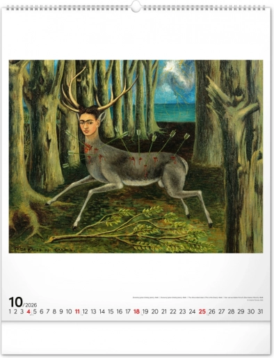 Scoprite la magia dell'arte di Frida Kahlo con questo calendario da parete di grande formato per l'anno 2026. Comprende dodici dipinti iconici dell'artista messicana, simbolo di coraggio e arte unica.