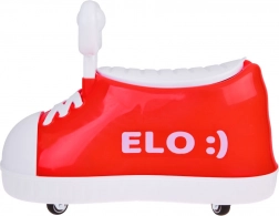 Il Trampek da cavalcare rosso Elo si distingue per il suo aspetto unico, che attira immediatamente l'attenzione. La sua forma stilosa a grande scarpa rossa con le scritte ELO :) e OLE :) fa sorridere ogni volto.