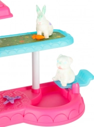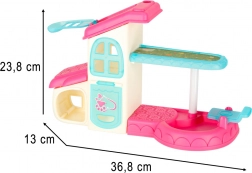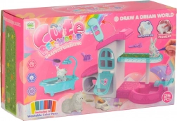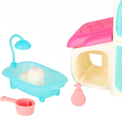 Questa casa per animali unica offre un salone SPA interattivo con piscina e doccia, ideale per la cura di piccole figure di animali, come cane, gatto o coniglio. Include inoltre sei colorati pennarelli per modifiche creative e giochi di capelli, che offrono spazio per il gioco creativo.