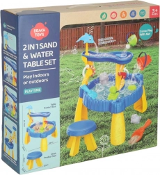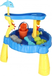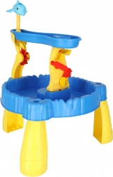 Tavolo da gioco 2 in 1 con fontana è ideale per il divertimento in casa e in spiaggia. Grazie al semplice montaggio è subito pronto all'uso. Il giocattolo sostiene l'integrazione sensoriale e motoria dei bambini.