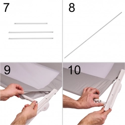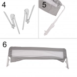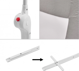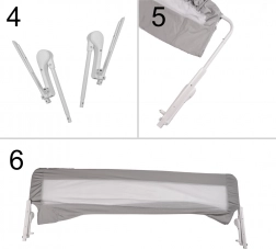 La protezione pratica garantisce contro le cadute accidentali, assicurando al contempo comfort e sicurezza per tutti i membri della famiglia. L'installazione è molto semplice: basta assemblare il telaio, inserirlo nel rivestimento in tessuto con rete e posizionare i supporti sotto il materasso.