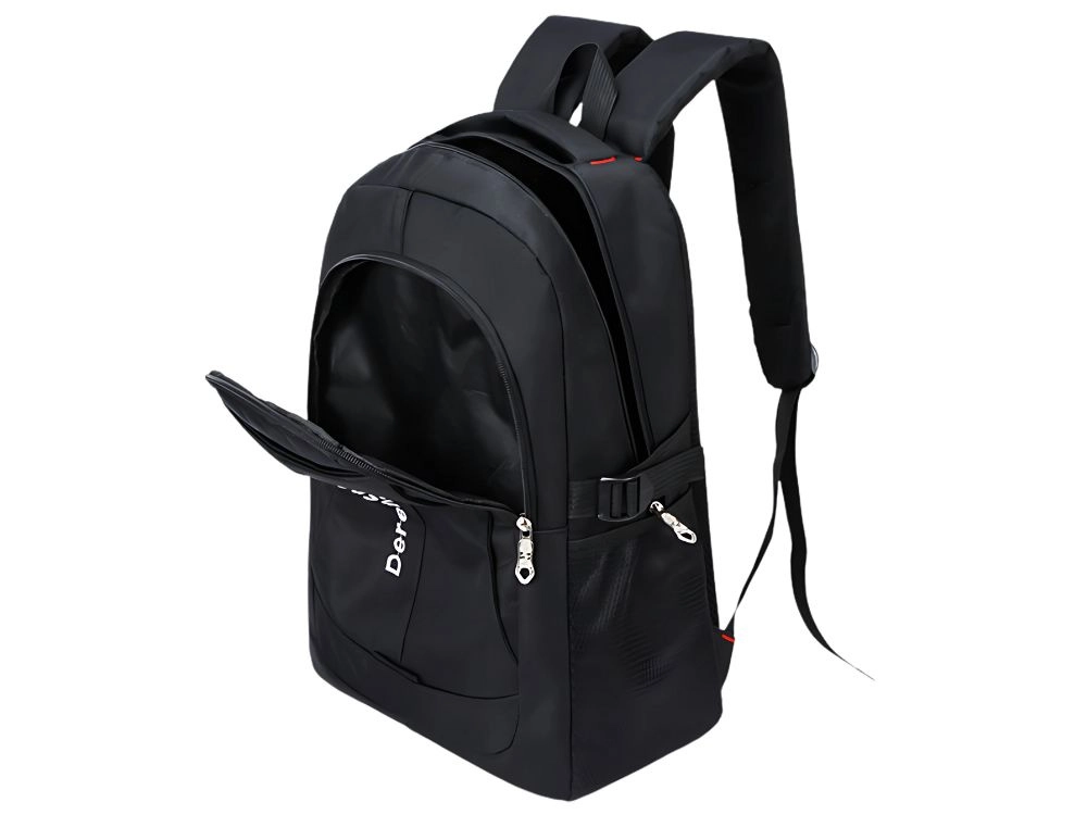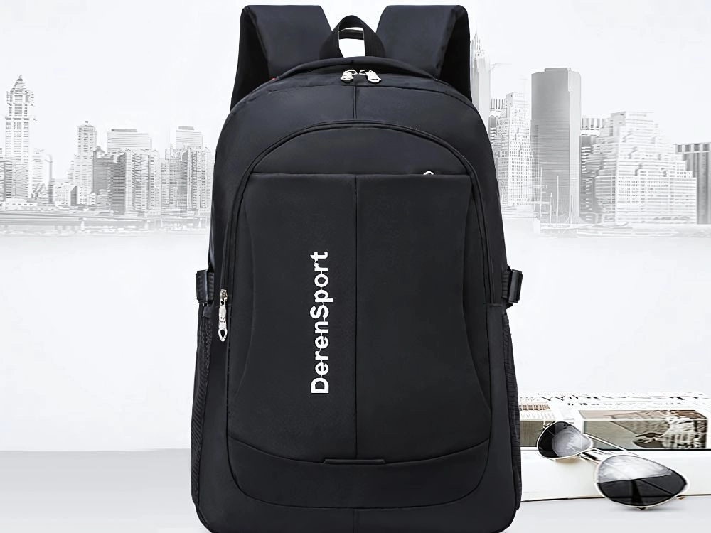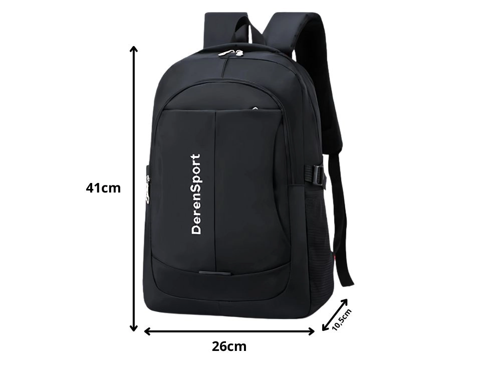 Elegante finitura nera con tasche laterali in rete per la borraccia e pratica maniglia superiore per un trasporto rapido.