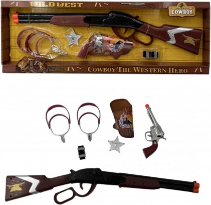 - Grande fucile, pistola con fondina, speroni, distintivo da sceriffo