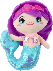 Il giocattolo ha grandi occhi ricamati, un volto sorridente, capelli viola decorati con un fiocco rosa e una coda impressionante coperta di paillettes. Le paillettes cambiano da lucide a opache con il tocco della mano, offrendo al bambino molta gioia e stimolando il suo senso del tatto e immaginazione.