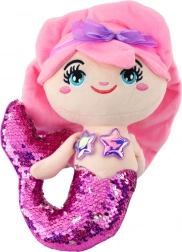Questo giocattolo ha grandi occhi ricamati, un volto sorridente, capelli rosa decorati con un fiocco e una coda elegante ricoperta di paillettes. Le paillettes cambiano colore da viola ad argento quando le accarezzi, portando gioia ai bambini e stimolando il loro tatto e immaginazione.
