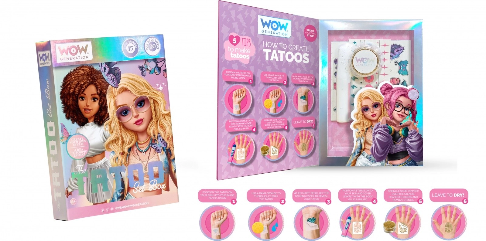 Esprimi la tua creatività e aggiungi un tocco di scintillio al tuo stile con il nostro set Wow Generation Glitter Tattoo Kit. Questo kit include tutto il necessario per creare splendidi tatuaggi temporanei che donano al tuo look un effetto abbagliante.