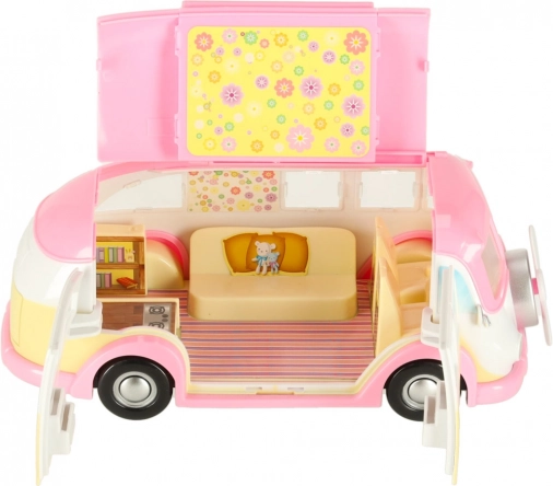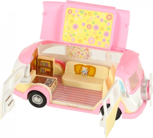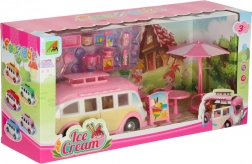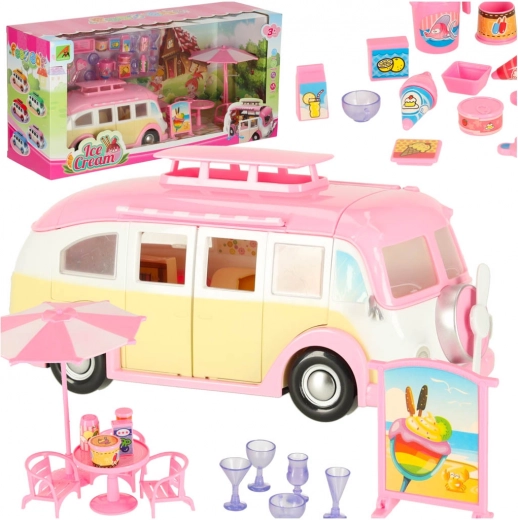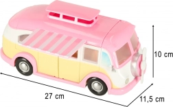 Questo adorabile camper dei gelati nelle tonalità rosa e crema trasforma ogni stanza in un piccolo bistrot su ruote. I bambini possono aprire tetto e porte, estrarre la tenda e servire i clienti al tavolino con ombrellone. I dettagli realistici degli interni stimolano la creatività e garantiscono ore di gioco.