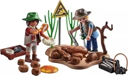 Svela antichi segreti con l’emozionante set di scavo PLAYMOBIL! Nascondi fossili come ammoniti, trilobiti e uova di dinosauro nelle rocce e riscoprili con strumenti realistici. Usa pennelli, martelletto e lente d’ingrandimento per analizzare con cura i tuoi ritrovamenti e conservali in sicurezza nella cassetta di legno. Con la fotocamera inclusa, i paleontologi possono documentare ogni scoperta emozionante. La base dettagliata con cespugli e rami invita a infinite esplorazioni fantasiose. Con il design curato di PLAYMOBIL, ogni scavo diventa un’avventura nel passato!