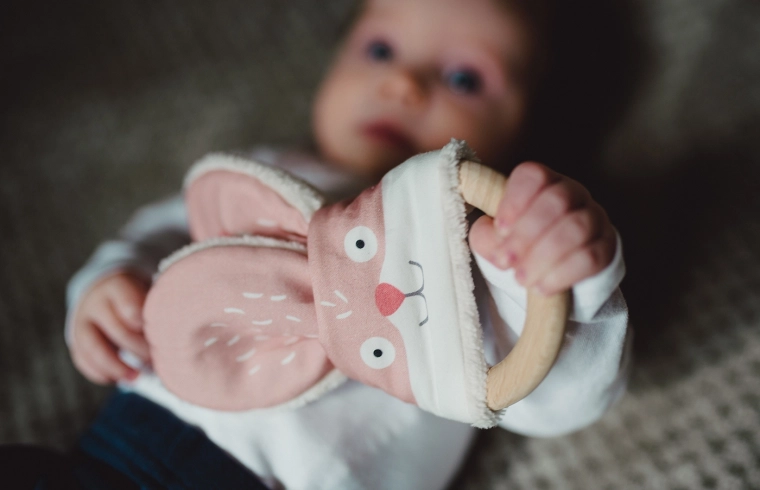 Il giocattolo da dentizione a forma di topo è realizzato in tessuto con stampa originale di Jitka di Ababu. È certificato per neonati e rispetta tutte le normative UE per i bambini da 0 anni. Questo giocattolo combina un viso tessile morbido in cotone 100% con un anello in faggio fatto a mano. La spugna di bambù, che compone il lato posteriore, è di materiali della più alta qualità provenienti dalla Francia.