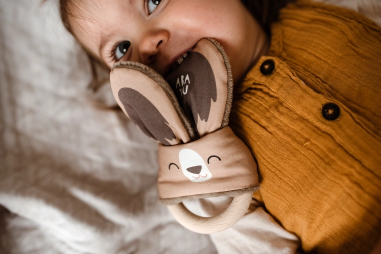 Il volto del giocattolo è stampato digitalmente nella Repubblica Ceca, mentre il retro è realizzato in frotte di bambù di alta qualità importato dalla Francia. Il dentaruccio non è solo esteticamente bello, ma anche salutare, completamente privo di BPA, PVC e ftalati.