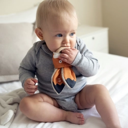Il morso di Volpe di Ababu è una scelta ideale per il tuo bambino. Realizzato con materiali di qualità nella Repubblica Ceca, con certificazione per bambini da 0 anni. Stampa d'autore e anello in faggio fatto a mano garantiscono sicurezza e originalità.