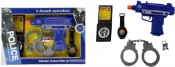 - Pistola, manette con chiave, orologio, distintivo